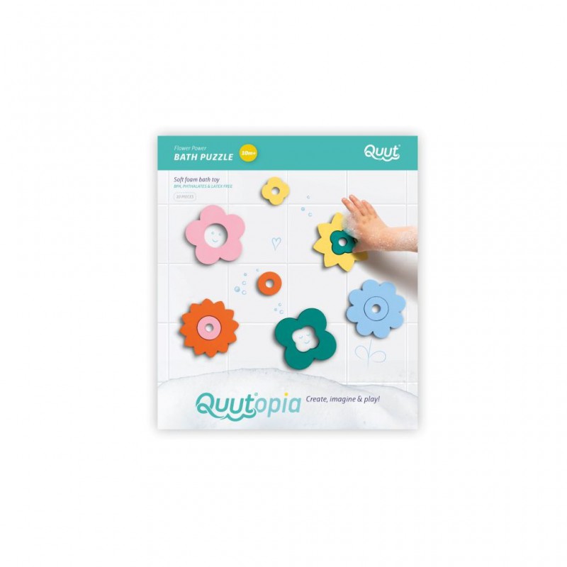 I puzzle d'acqua QUUTopia sono fiori 2D dai colori vivaci realizzati in morbida schiuma per bambini a partire da 10 mesi. Dai alla tua vasca da bagno o doccia un nuovo look colorato con i fiori QuUTopia. Fare il bagno non è mai stato così divertente! Con i giochi d'acqua , i bambini possono godersi momenti gioiosi con i loro genitori e fratelli e costruire relazioni migliori insieme. Il set contiene 10 parti che galleggiano sull'acqua e possono essere attaccate alla parete della vasca o della doccia.