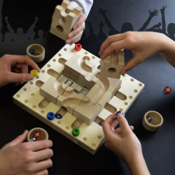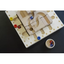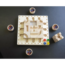 Al tuo turno puoi spostare e/o ruotare gli elementi (Cuboro). In modo che la tua pista per biglie termini su un'uscita vuota. Ottieni punti in base alla lunghezza (elementi Cuboro utilizzati) della tua pista. Il gioco si basa sul sistema Cuboro. Sono incluse diverse versioni. In quella facile usi solo un livello di elementi (la biglia scorre solo in superficie). Nella versione più impegnativa usi anche i tunnel (parte centrale del cubo).