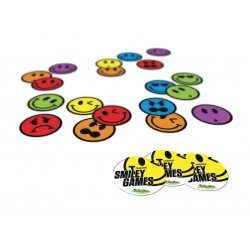 Sfida i tuoi amici con le faccine. Puoi fare tanti giochi diversi… devi trovare le faccine con colore e disegno indicati dai dadi, devi essere il più veloce a riconoscere il tuo colore e la tua faccina, oppure devi ricordarti i nomi di tutti i tuoi avversari. Puoi divertirti anche con un originale domino e una semplice partita a uno.