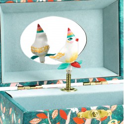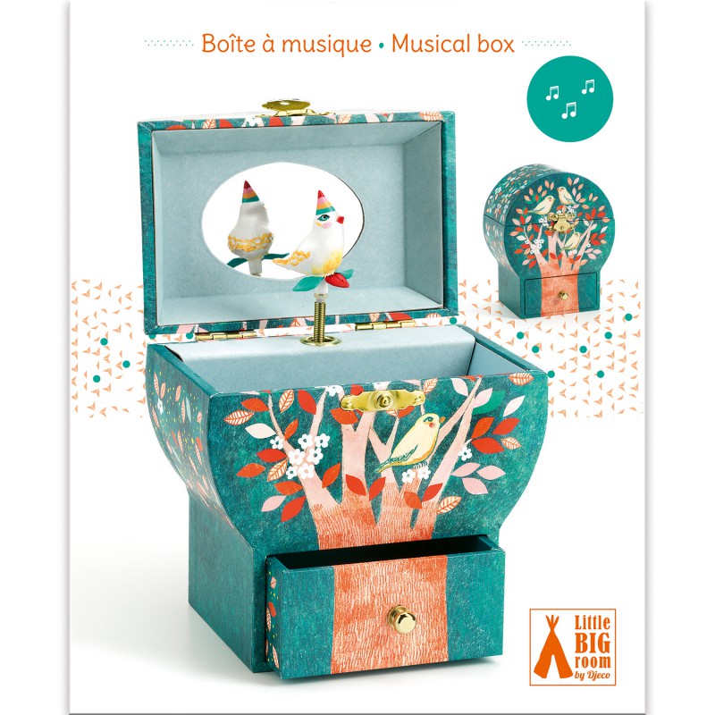 "Albero poetico" è un carillon foderato con un morbido velluto e sagomato con splendide illustrazioni. Dotato di un cassetto per conservare i gioielli e i propri segreti e di uno specchio ovale. Girate la chiave, aprite la scatola e tutto prende vita! Uno splendido personaggio dai dettagli raffinati gira sulle note di "Santa Lucia" di Johnn Strauss. La melodia dura circa 2 minuti e 30.