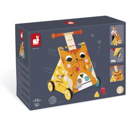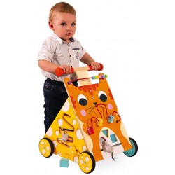 Miaaao! Fate largo al felino più adorabile del mondo! Il nostro gatto rosso con gli occhi grandi è sempre pronto per passeggiate e avventure con il tuo bambino! Questo carrello in legno multi-attività accompagnerà i bambini da 1 anno grazie ai tanti piccoli giochi sui suoi 3 lati!