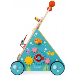 Ci divertiamo e sviluppiamo le nostre capacità motorie e destrezza con le 8 divertenti attività del nostro gatto intelligente: percorsi con pesci, gioco a incastro tradizionale, un piccolo topolino da far scivolare da un lato e ingranaggi e pulsante sonoro del fondale marino dall'altro. I grandi occhi del nostro gatto ruotano e le sue guance sono fatte di feltro per sviluppare il tocco del bambino. Questo grazioso carrello a spinta è particolarmente adatto per imparare a camminare. Grazie alla sua maniglia regolabile in altezza (da 47 a 53 cm), è scalabile e si adatta alle dimensioni del tuo bambino. Può così accompagnarlo da 12 mesi a 3 anni. Per sicurezza, è dotato di un freno invisibile e rimovibile che consente di bloccare le ruote (a 12 mesi) e rilasciarle gradualmente al fine di controllare la velocità del carrello durante l'apprendimento. Infine, con le sue 4 ruote in gomma silenziose, non segna il terreno! Non resta che battezzare questo nuovo amico!