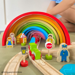 Vincitore della medaglia d'oro nella categoria Miglior giocattolo in legno da Toyshop UK, il Set Trenino "Figure of Eight Train Set" è il primo set di treni ideale per qualsiasi appassionato di ferrovie in erba. Questo fantastico set di treni include binari in legno di alta qualità, un motore colorato con 2 carrozze colorate e una varietà di accessori per tenere occupate le giovani menti per ore! I treni possono risalire la collina e poi sfrecciare giù dall'altra parte! Gli accoppiamenti magnetici garantiscono la compatibilità con tutti gli altri motori e carrelli della gamma Bigjigs Rail. Sono disponibili accessori aggiuntivi per espandere questo set. La maggior parte degli altri principali marchi ferroviari in legno sono compatibili con Bigjigs Rail. Realizzato in alta qualità, materiali di provenienza responsabile. Conforme alle vigenti norme di sicurezza europee.